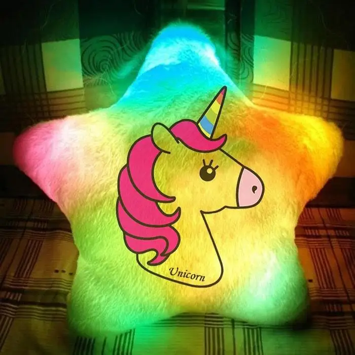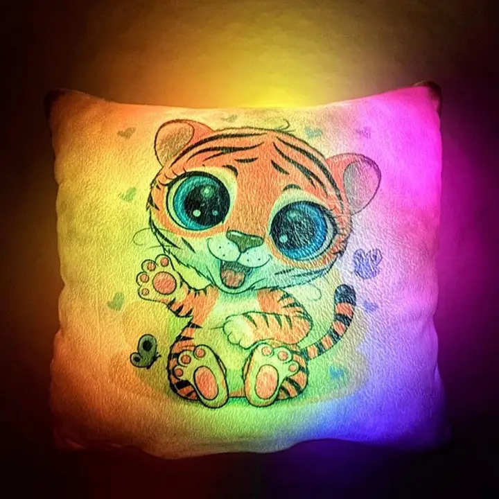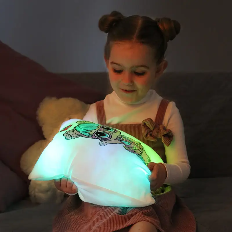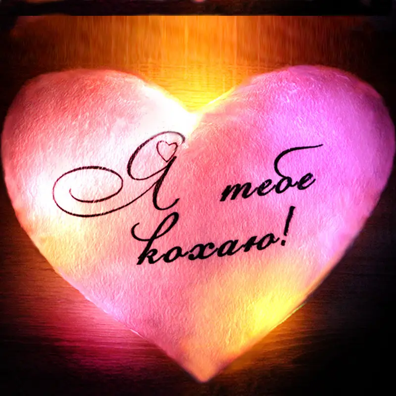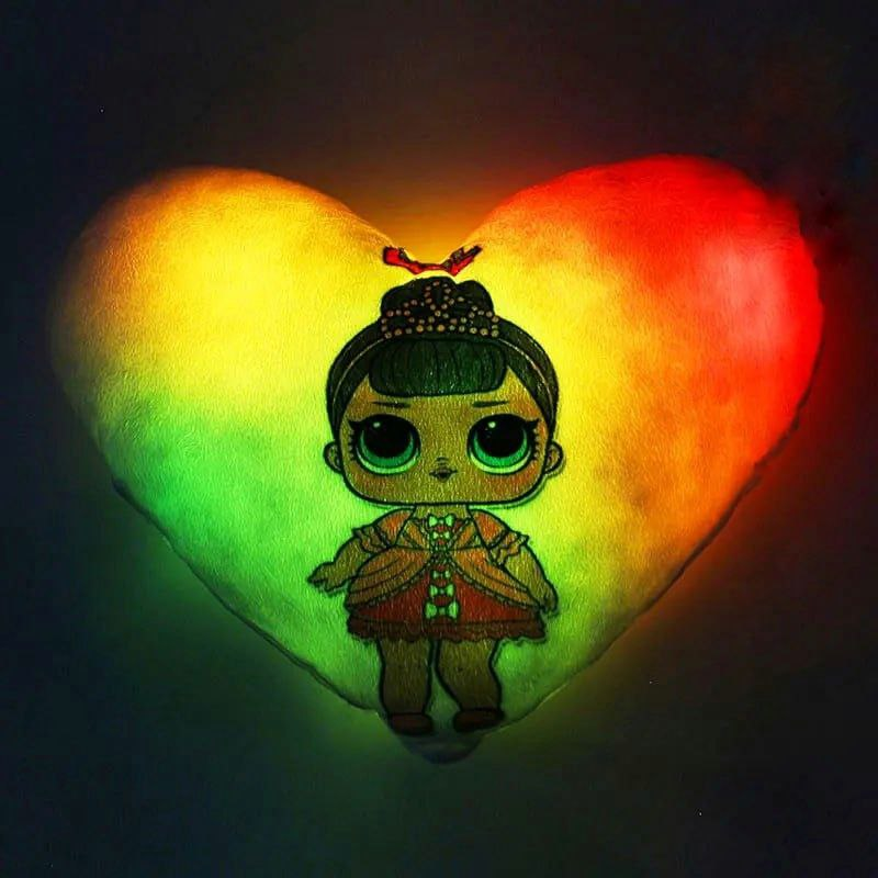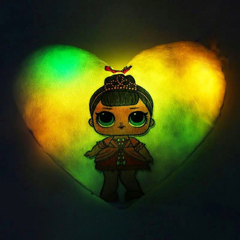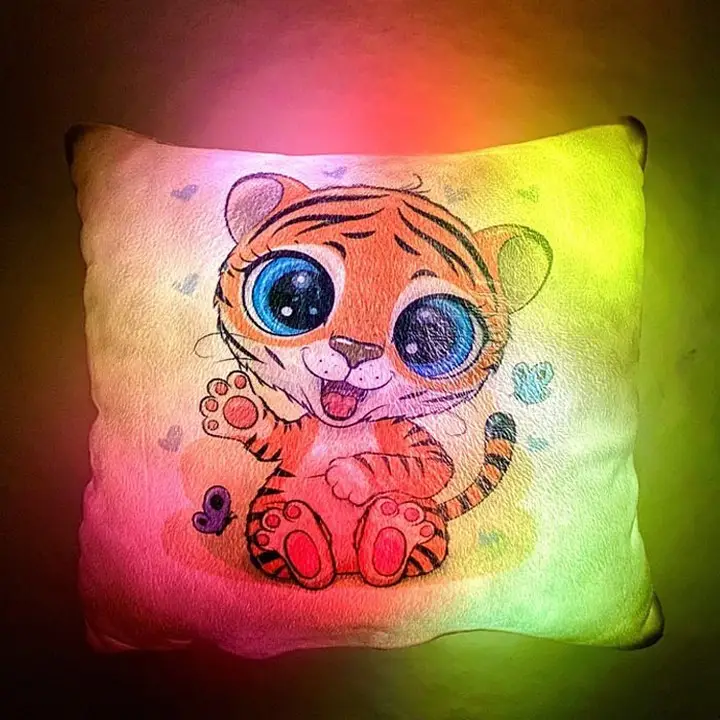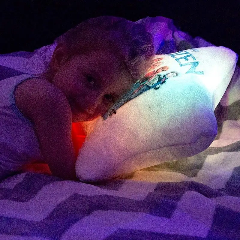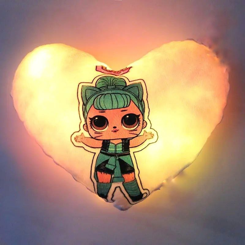 Переваги : Подушка сяє за допомогою блока живлення, міні led-лампочок і 2-х батарей ААА.