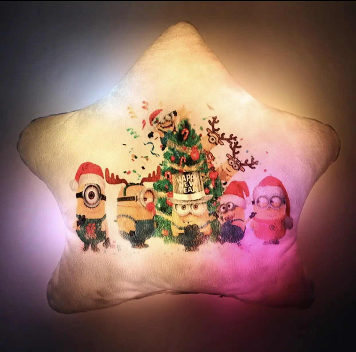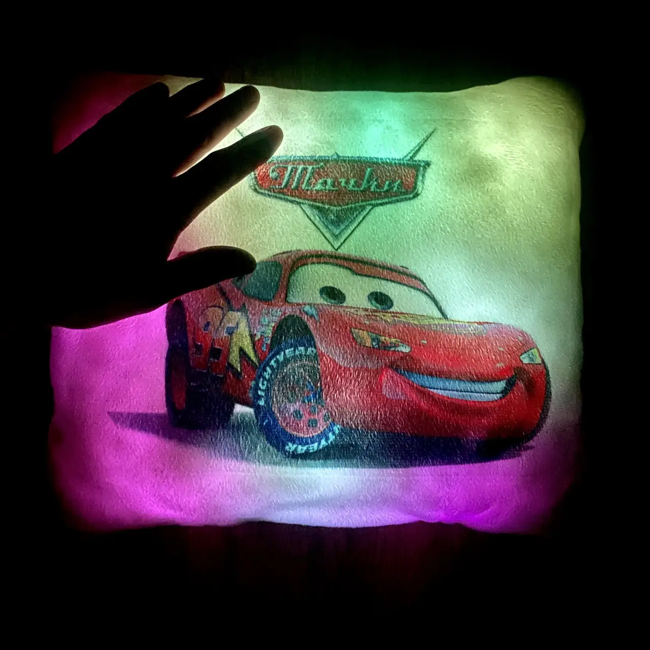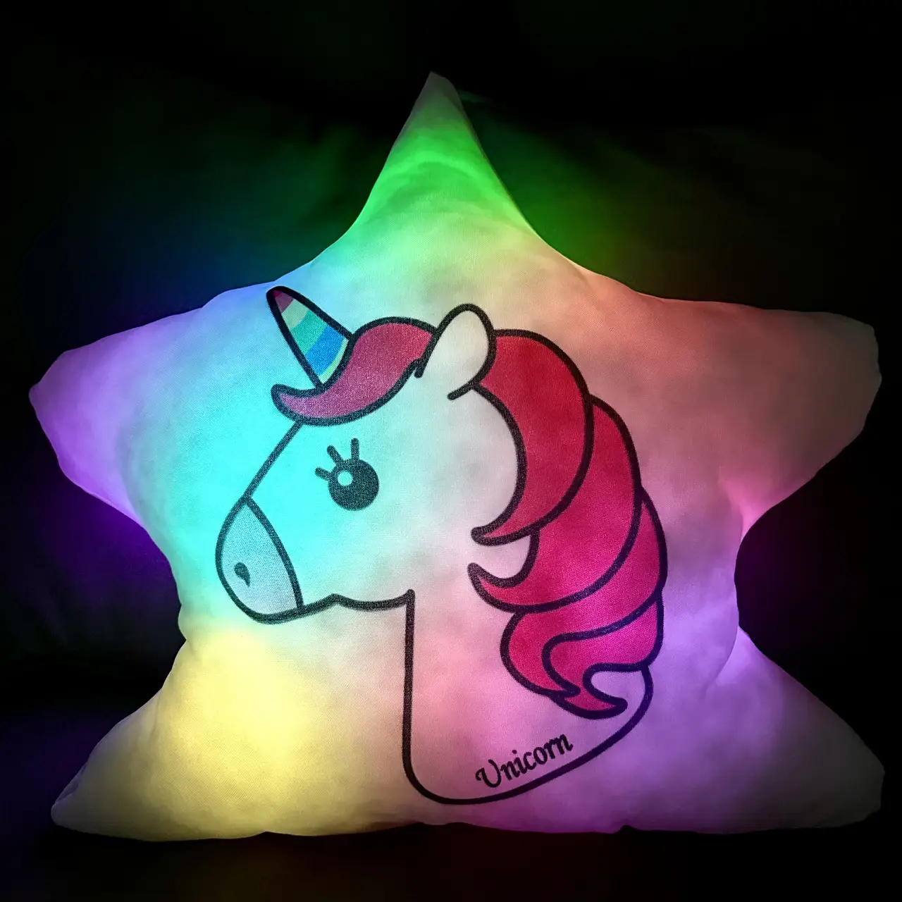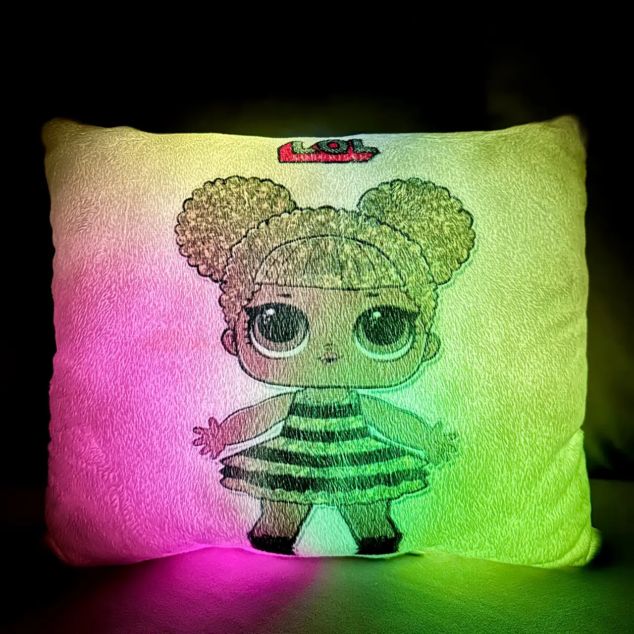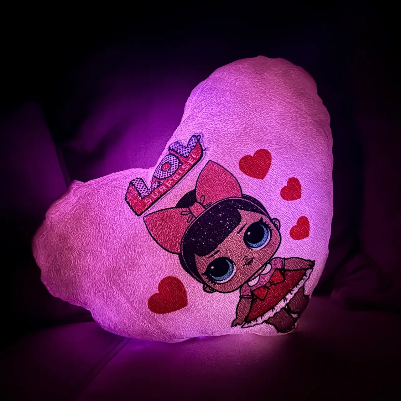 Переваги : Подушка сяє за допомогою блока живлення, міні led-лампочок і 2-х батарей ААА.
