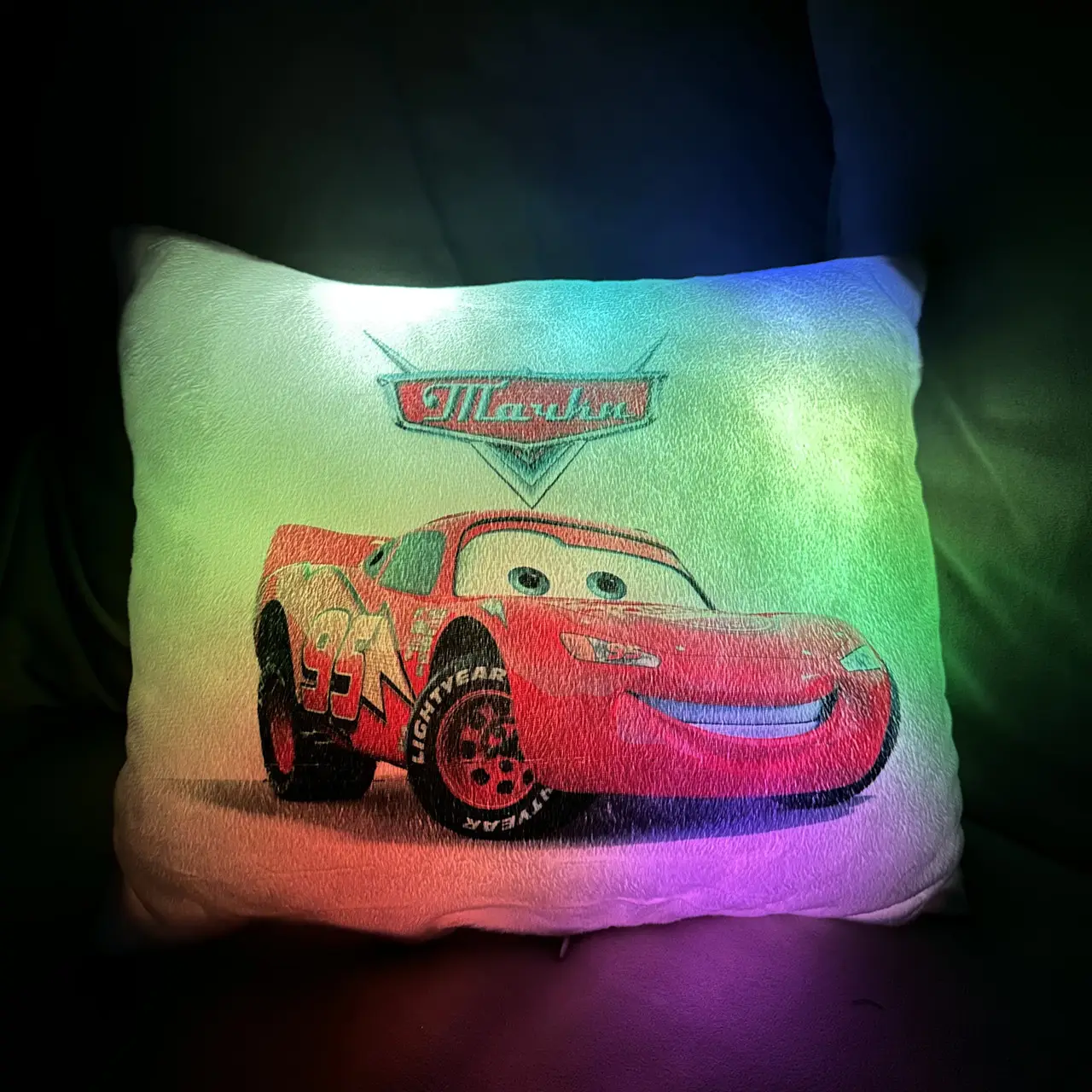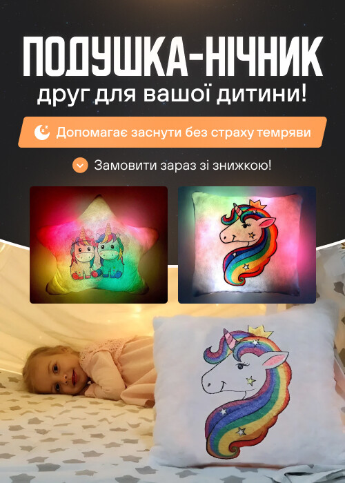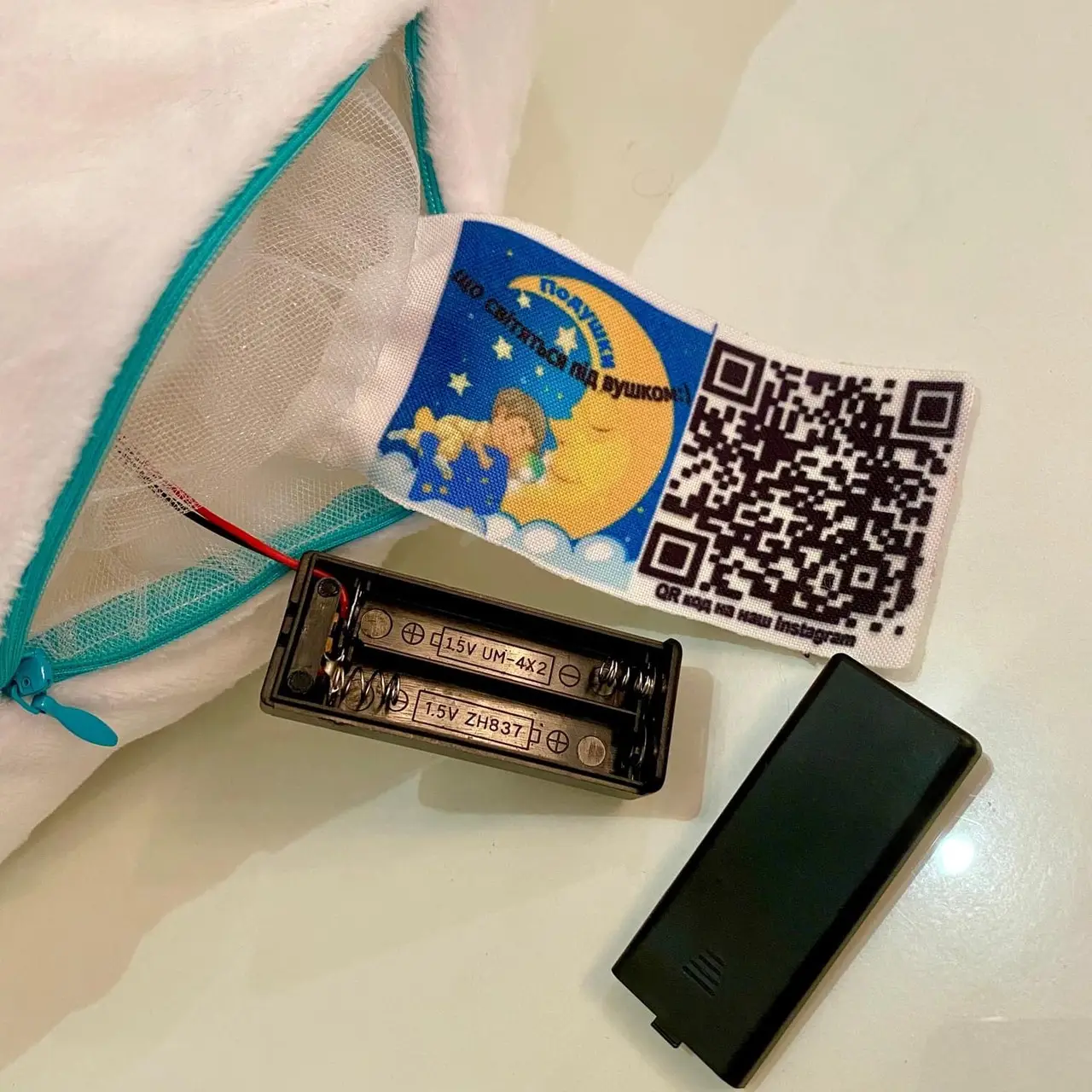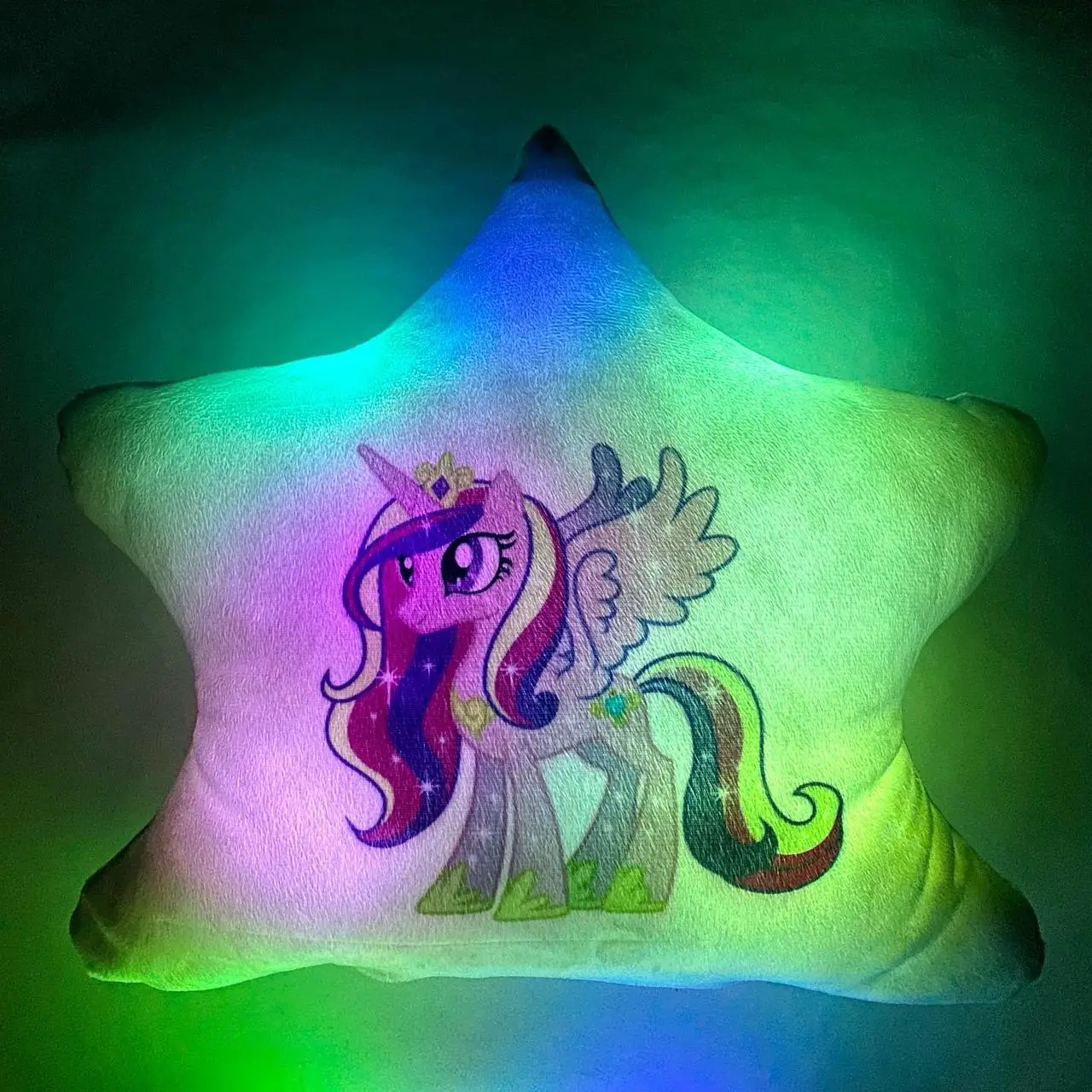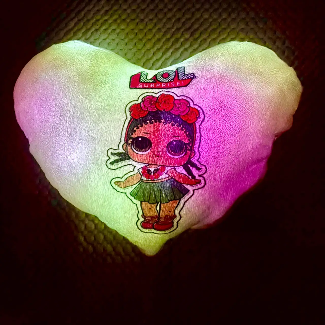 Переваги : Подушка сяє за допомогою блока живлення, міні led-лампочок і 2-х батарей ААА.