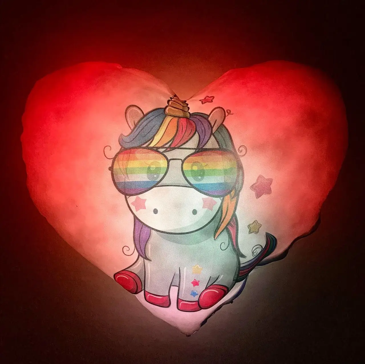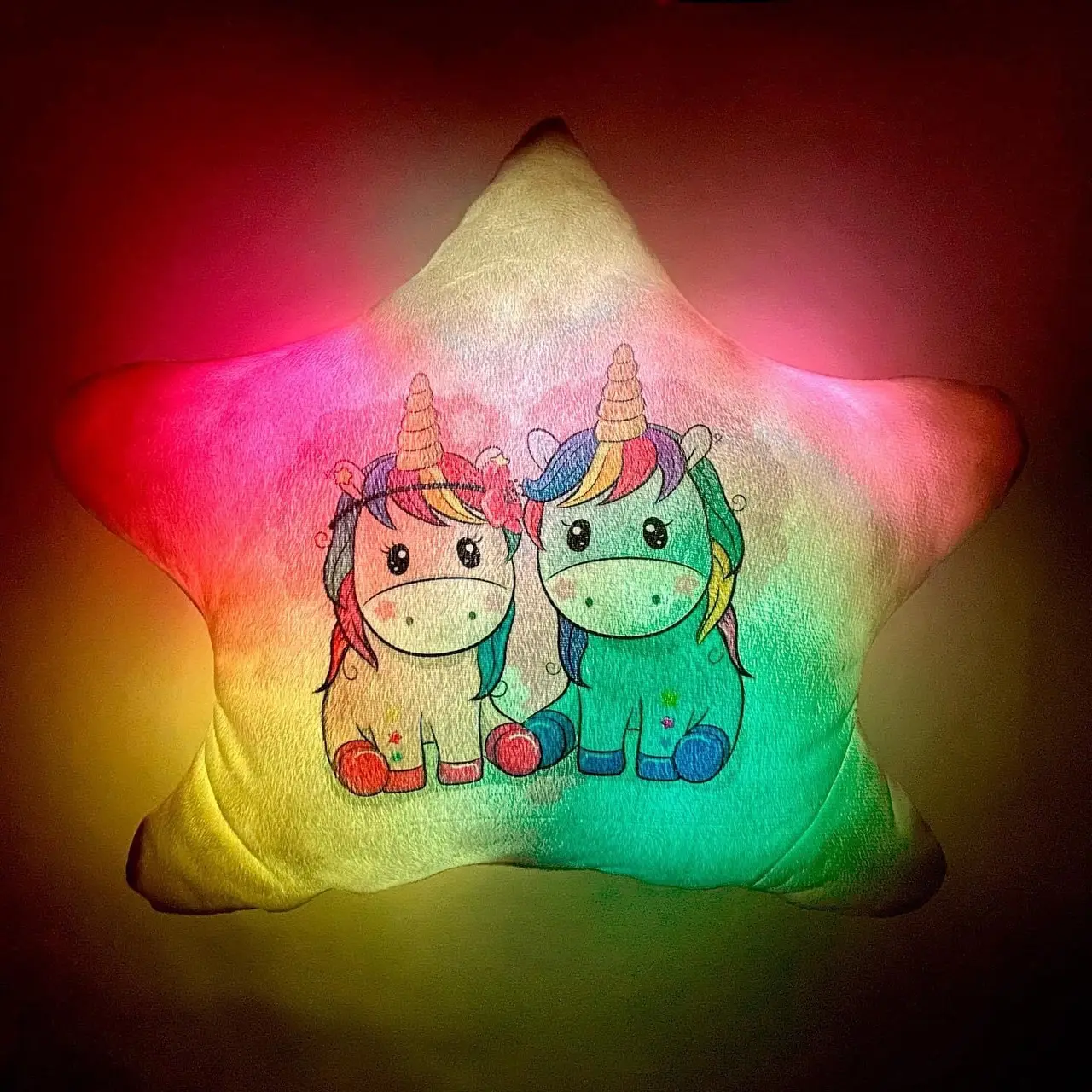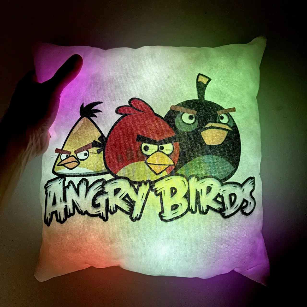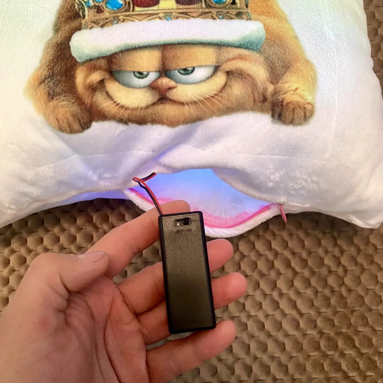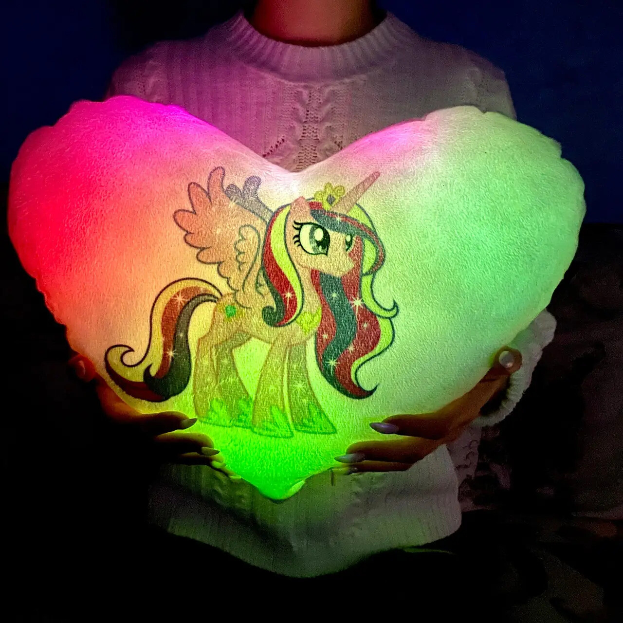Переваги : Подушка сяє за допомогою блока живлення, міні led-лампочок і 2-х батарей ААА.