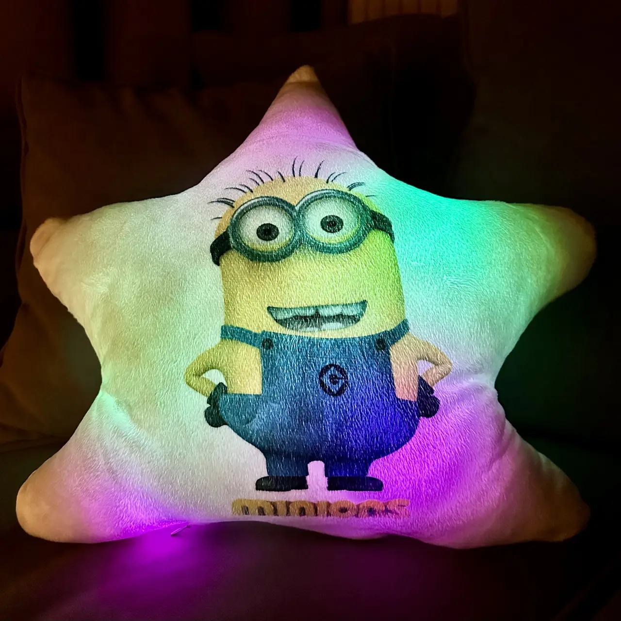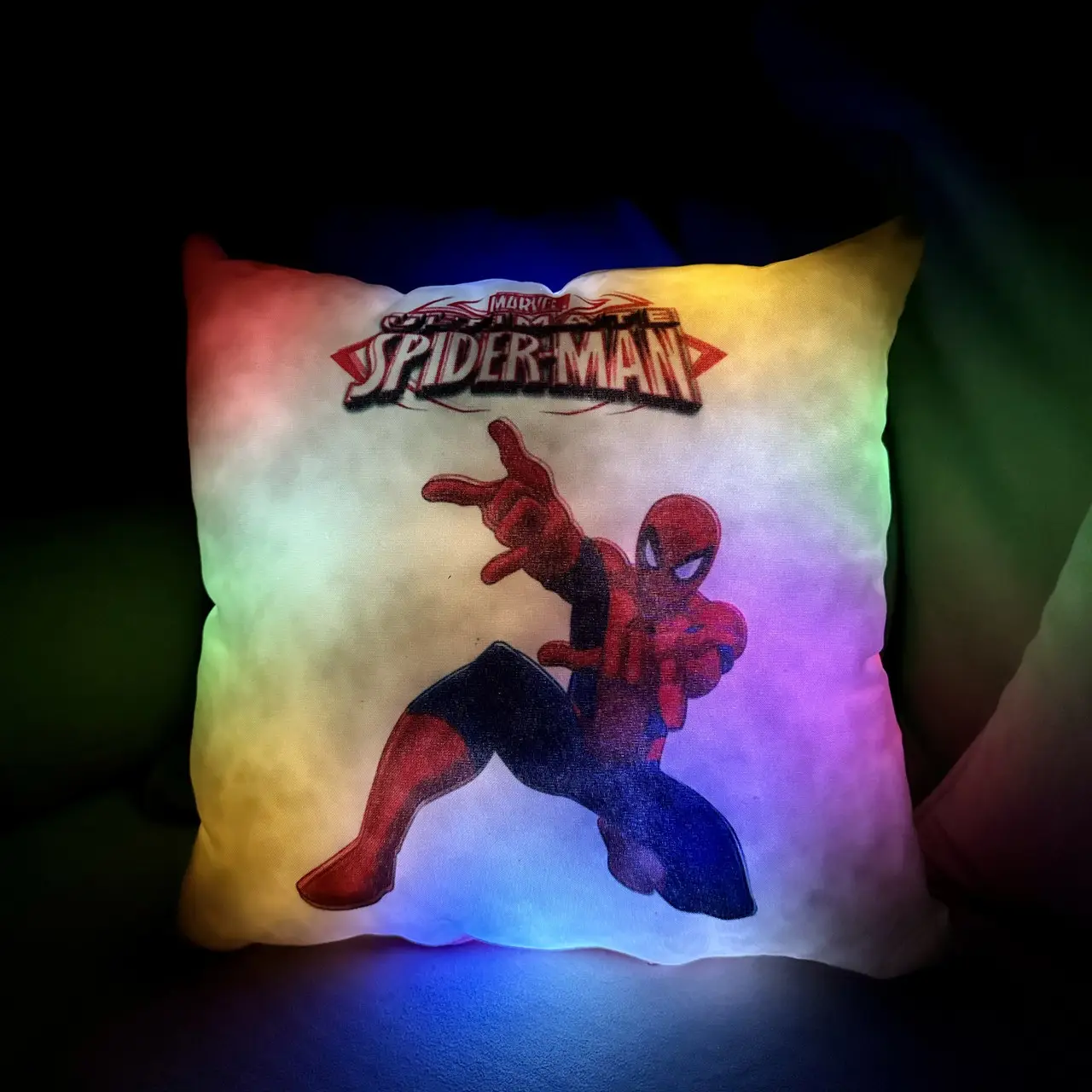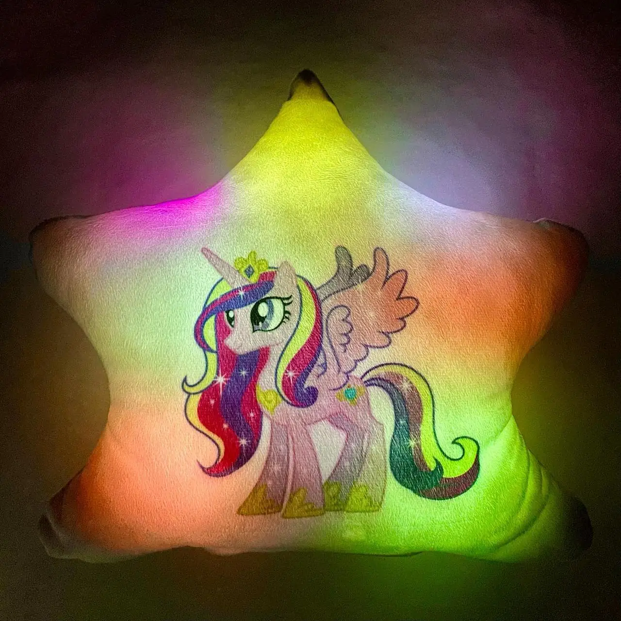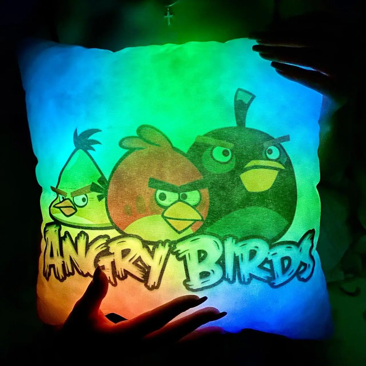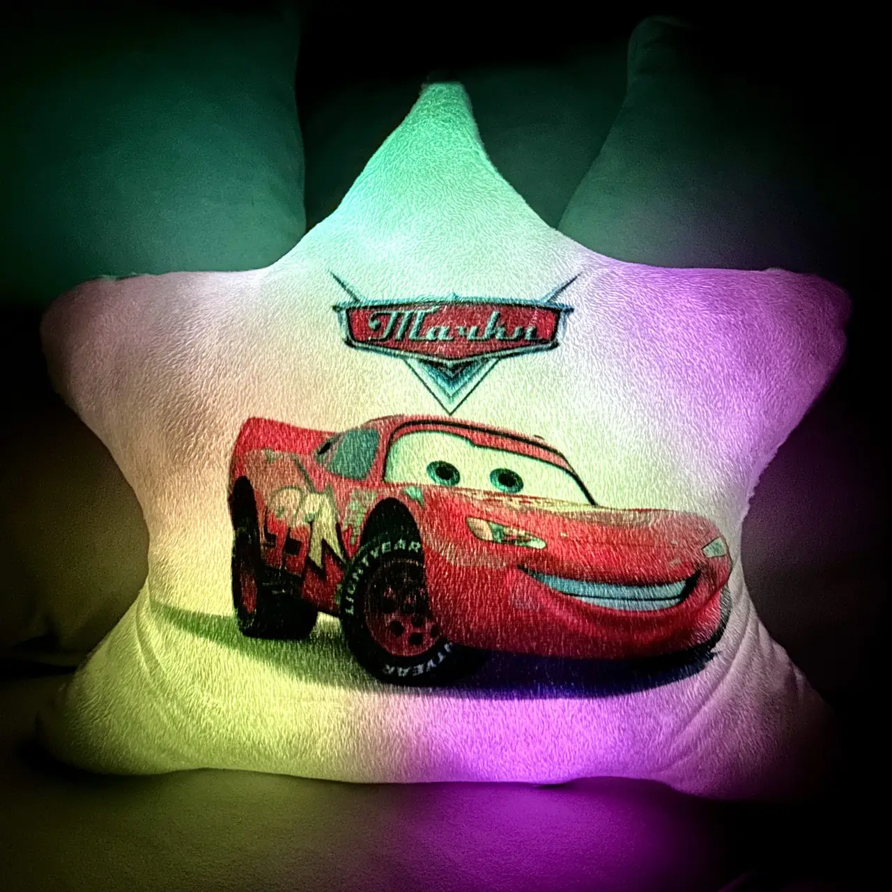 Переваги : Подушка сяє за допомогою блока живлення, міні led-лампочок і 2-х батарей ААА.