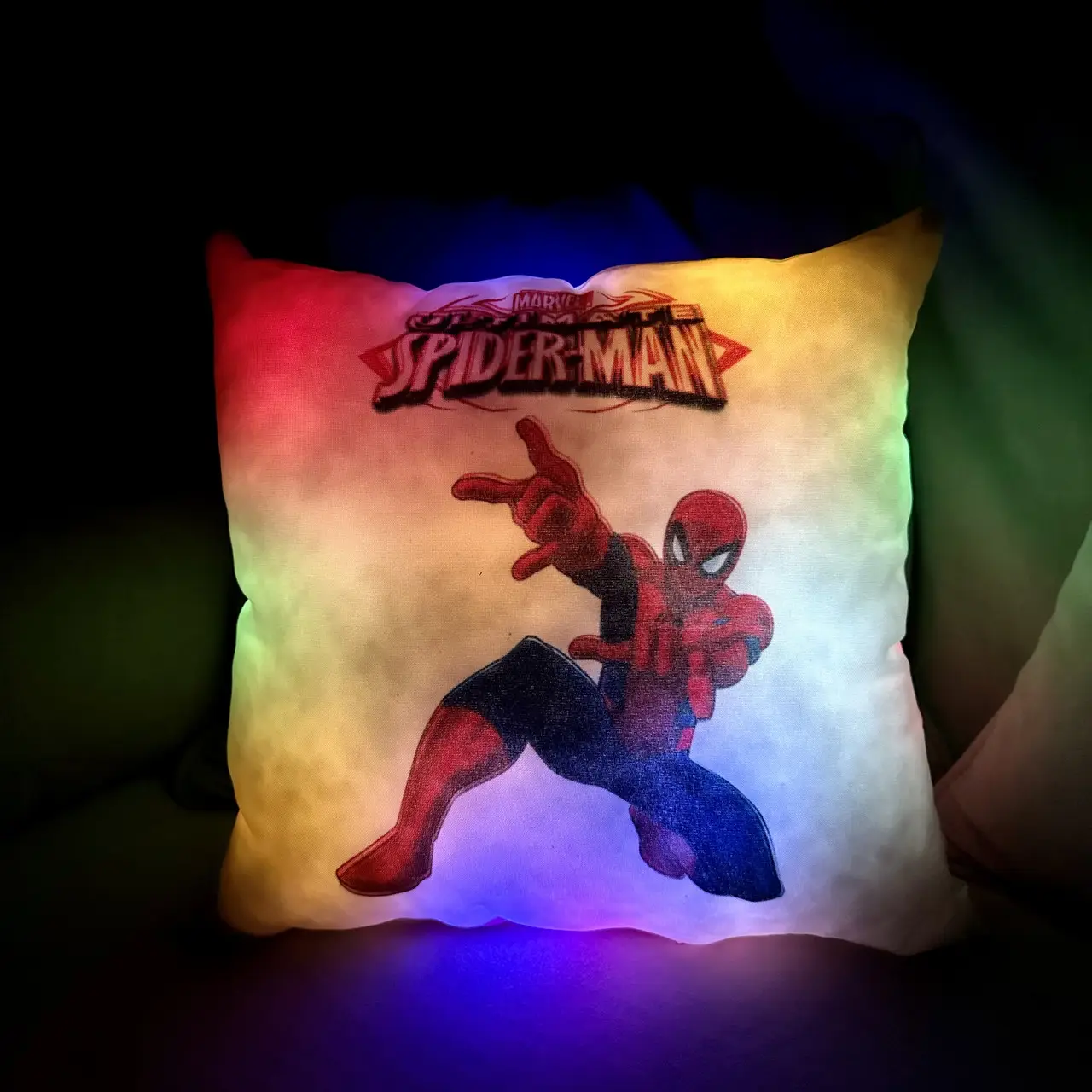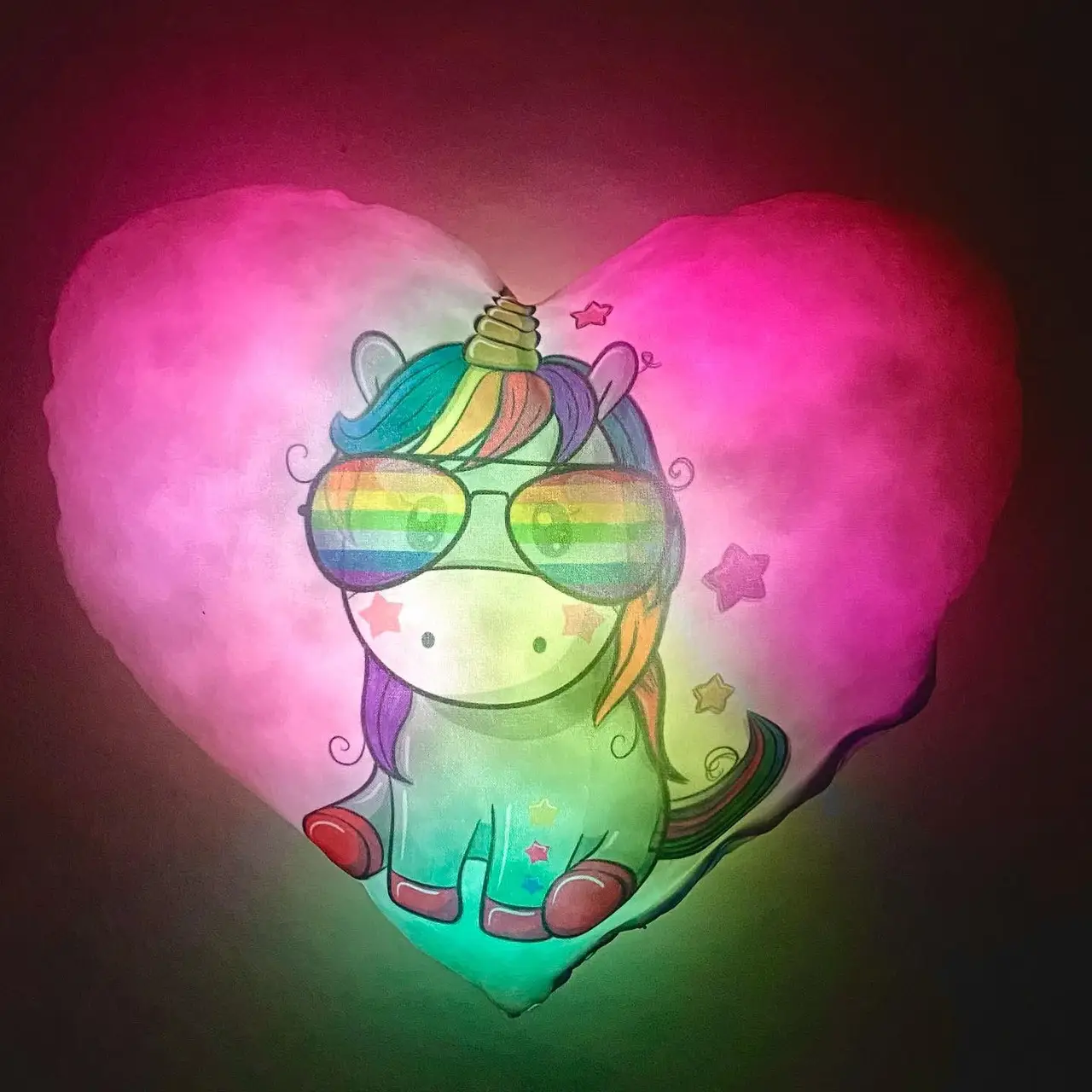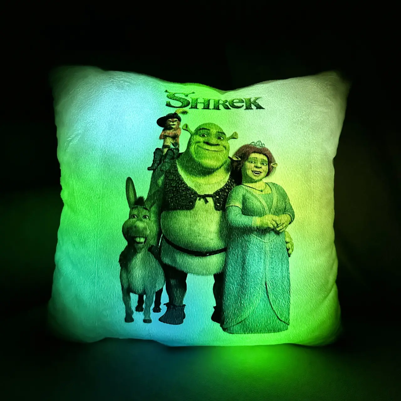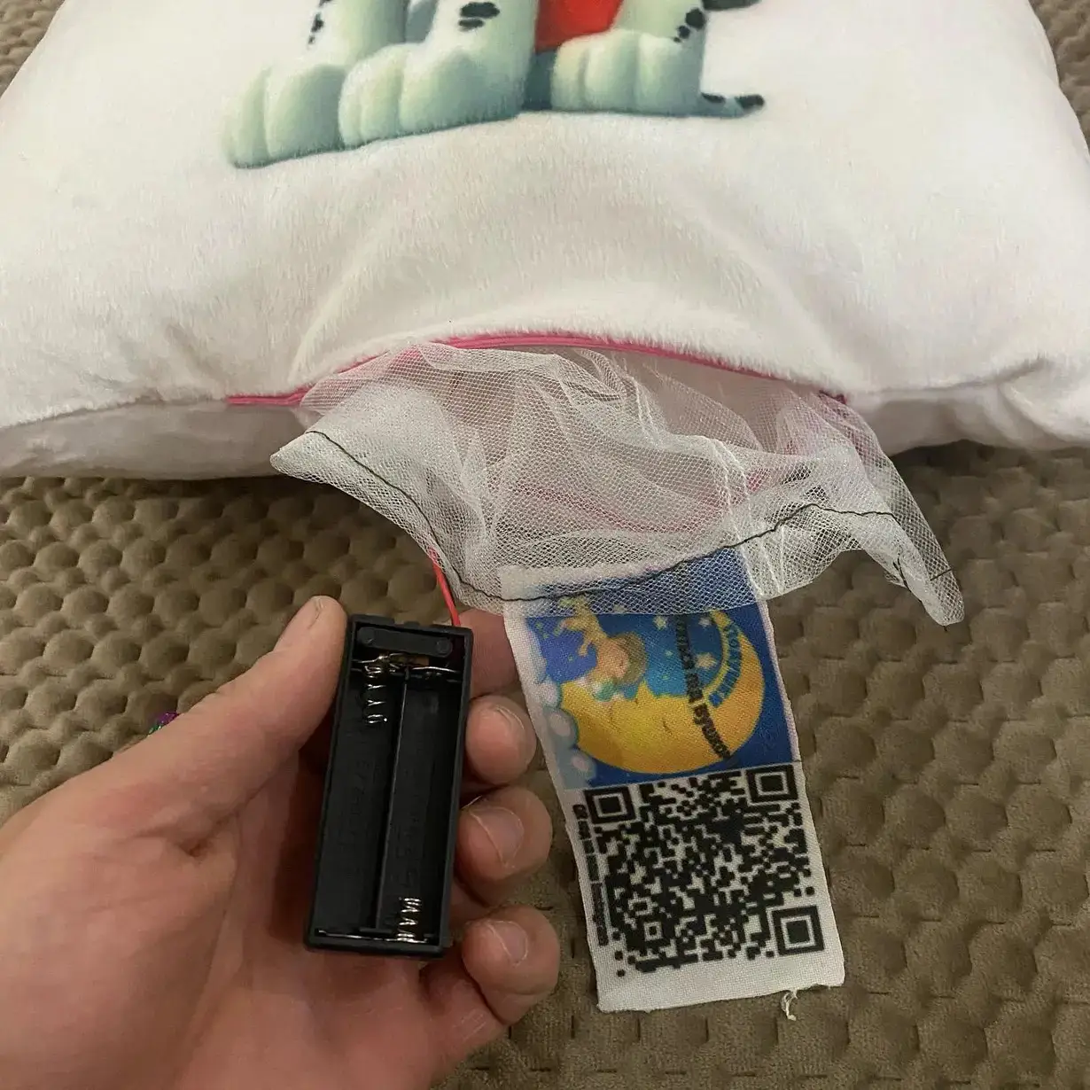 Переваги : Подушка сяє за допомогою блока живлення, міні led-лампочок і 2-х батарей ААА.