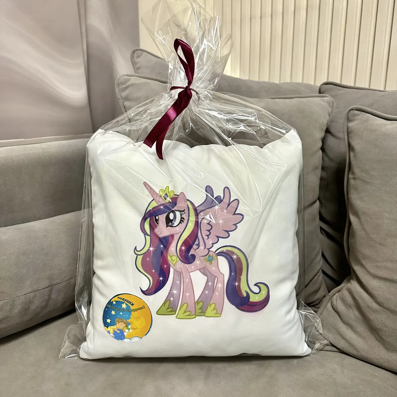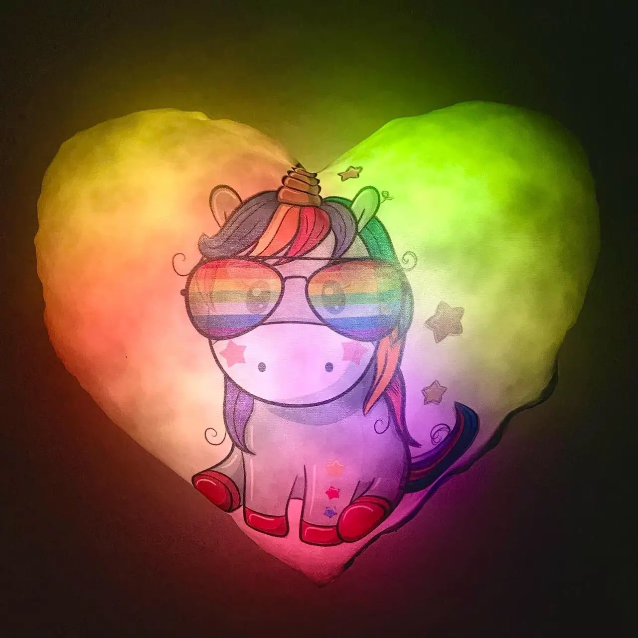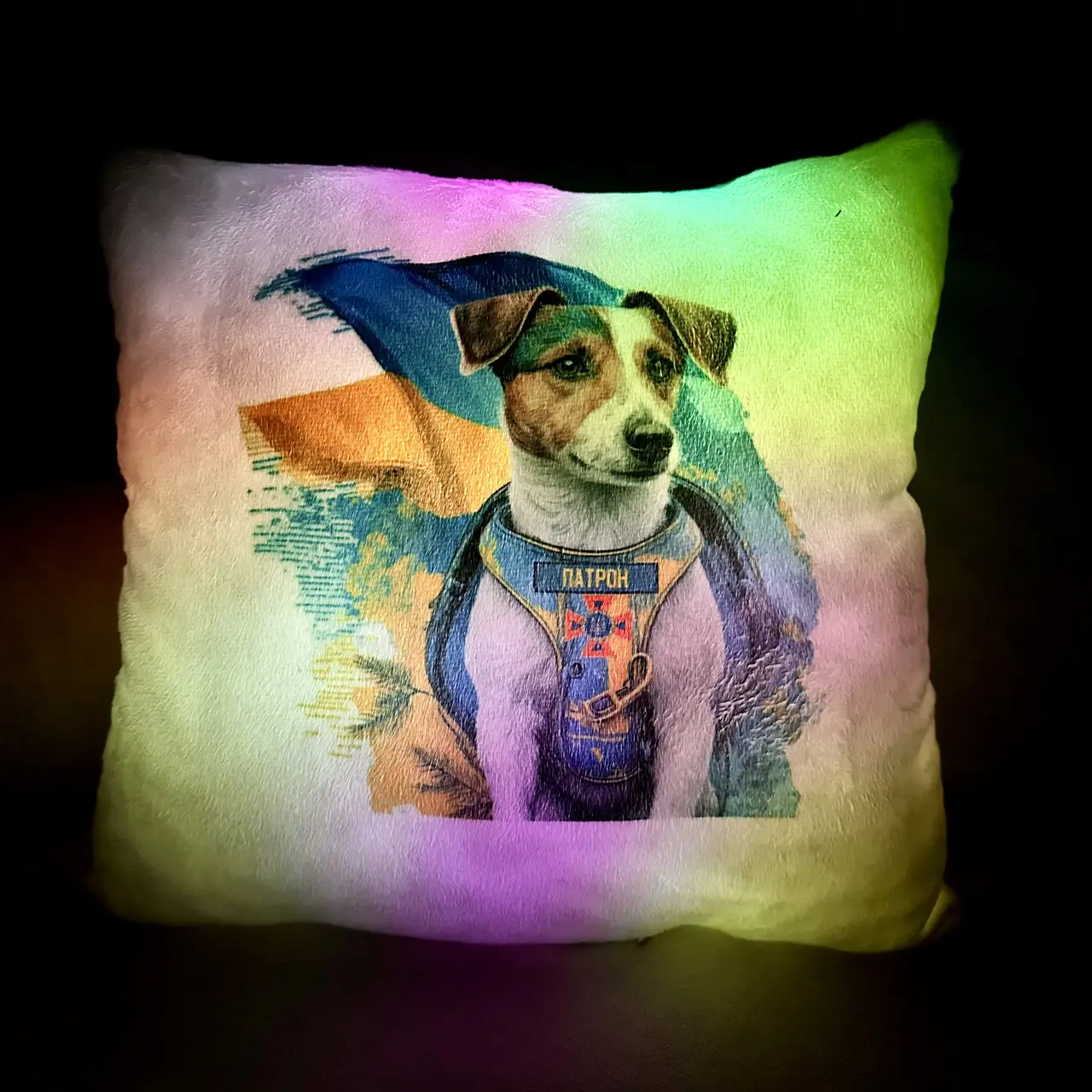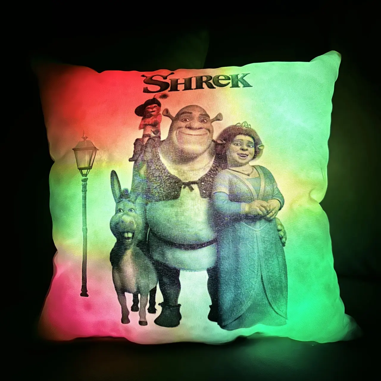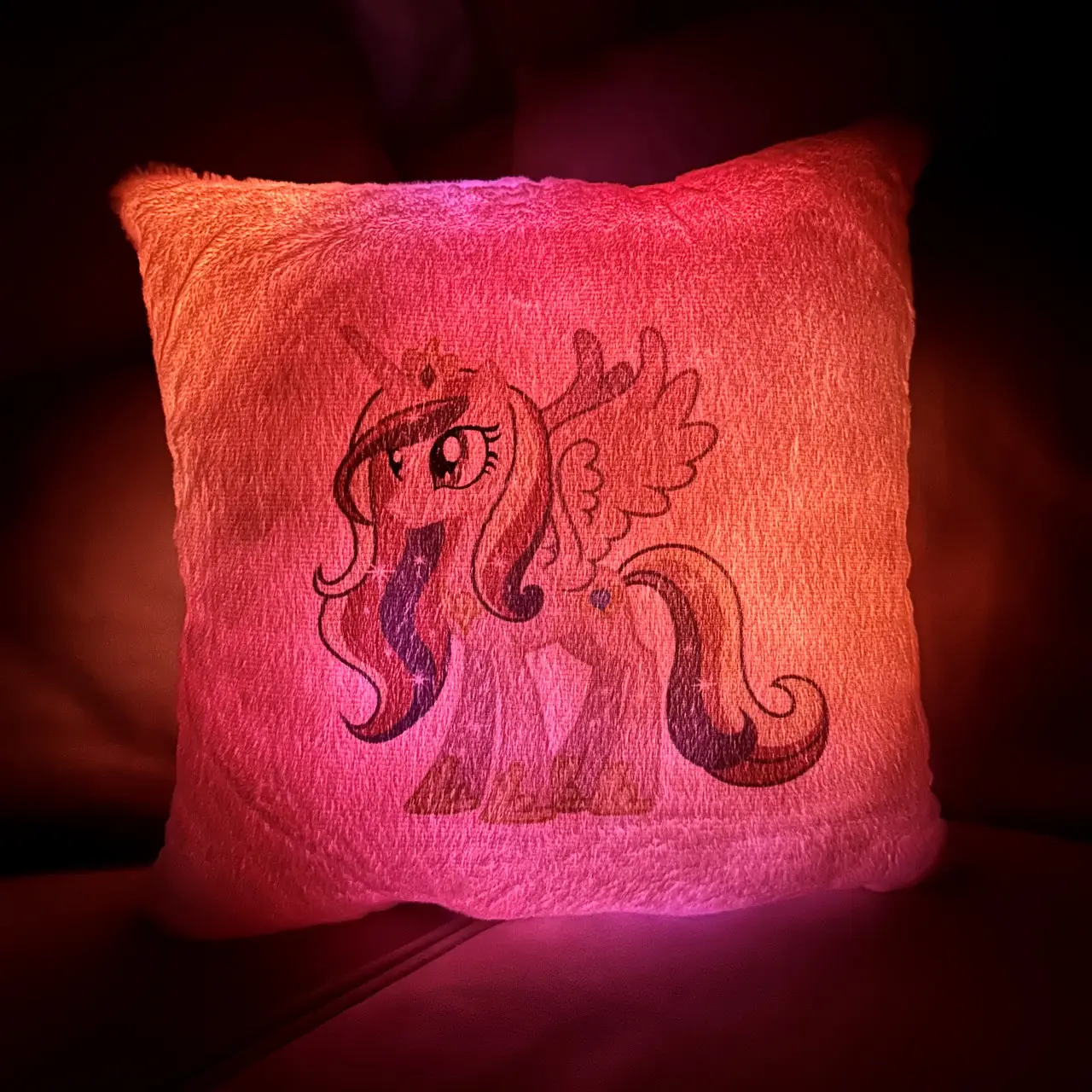 Переваги : Подушка сяє за допомогою блока живлення, міні led-лампочок і 2-х батарей ААА.